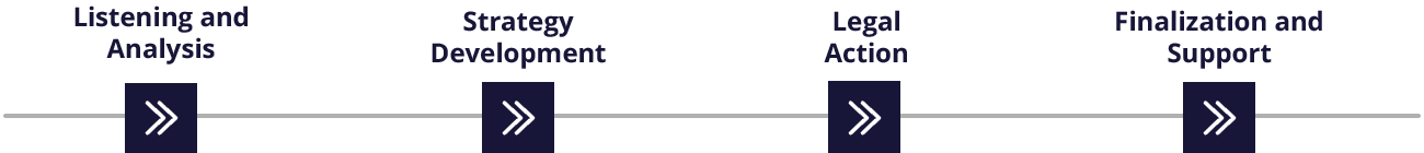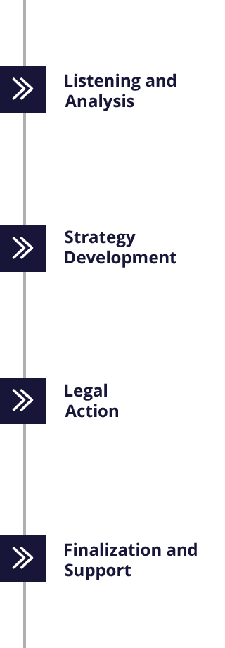 We are with you at every step: Listening and Analysis, Strategy, Legal Action, Execution and Support